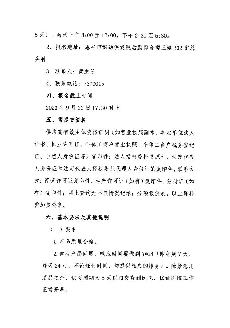 恩平市妇幼保健院关于医院后勤保障物资--......