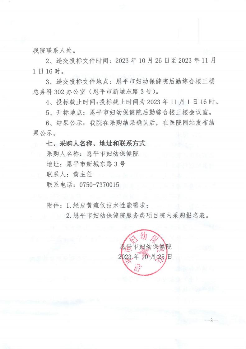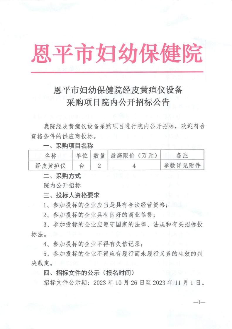 恩平市妇幼保健院经皮黄疽仪设备采购项目招标公告