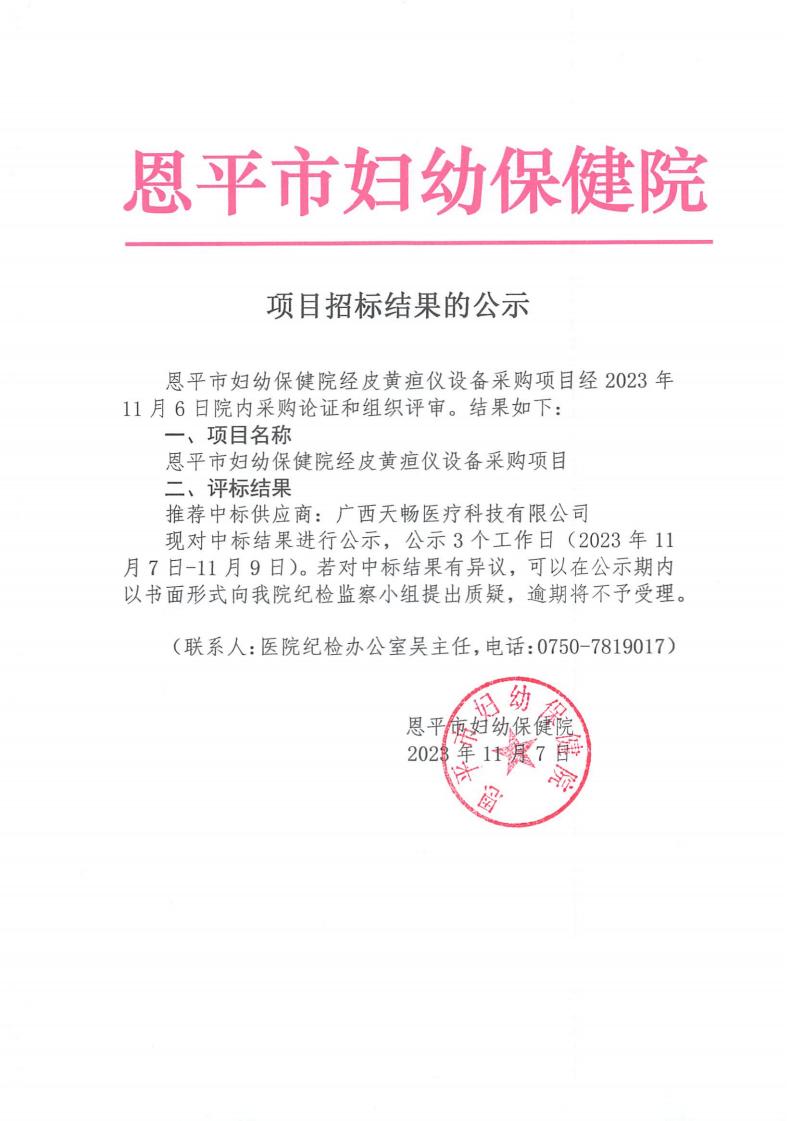 恩平市妇幼保健院经皮黄疽仪设备采购项目结果公示